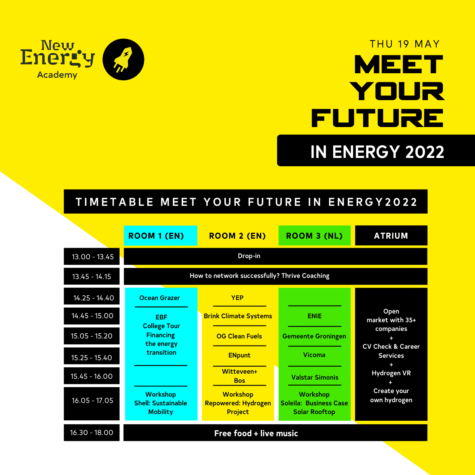 The energy sector is strongly represented in the Northern Netherlands and there are many job opportunities, now and in the future. So take a step forward and future-proof your career by signing up for Meet Your Future in Energy. Join and get inspired by interesting speakers, meet and talk to companies that are looking for you, and follow one of the workshops. Let’s meet your future employer and learn more about working in the broad field of energy!